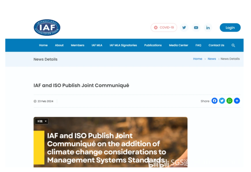 关于IAF和IAS在管理体系中增加气候变化考虑联合公报及相关情况的通知